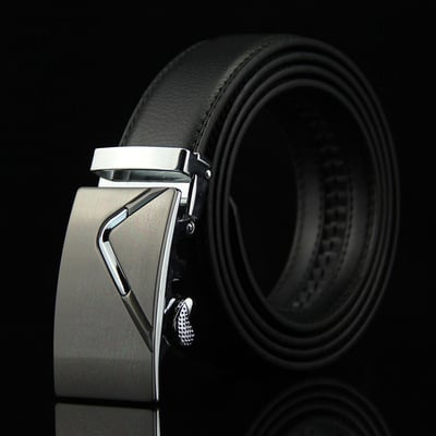 Curea de Piele Naturală cu Cataramă Automată Negru cu Argintiu - Eleganță și Confort