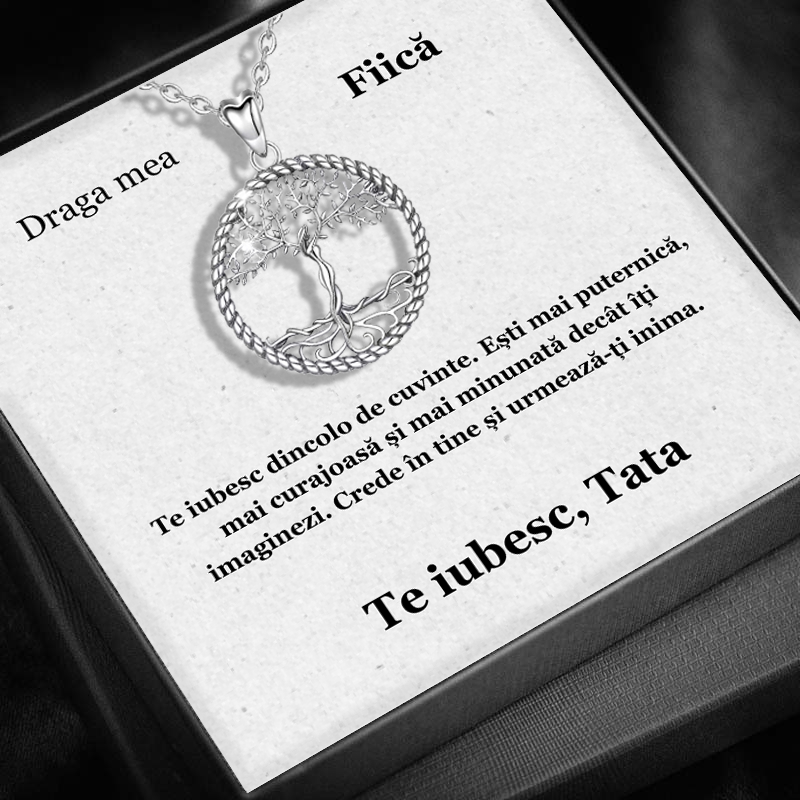 Set Cadou Fiică – Colier cu Pandativ Copacul Intelepciunii din Argint 925 placat cu rodiu, Cutie Elegantă și Felicitare Personalizată