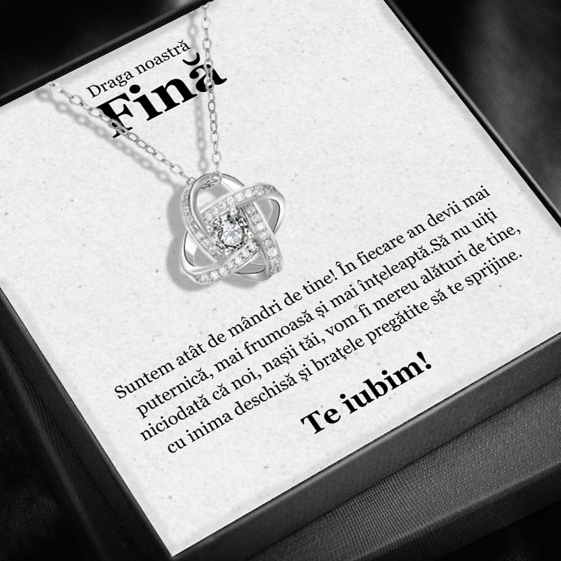 Un cadou perfect pentru fina ta, care aduce lumină și bucurie în viața voastră, un dar care va rămâne mereu ca un simbol al iubirii, aprecierii și recunoștinței pentru tot ceea ce este și tot ce reprezintă pentru familia ta.