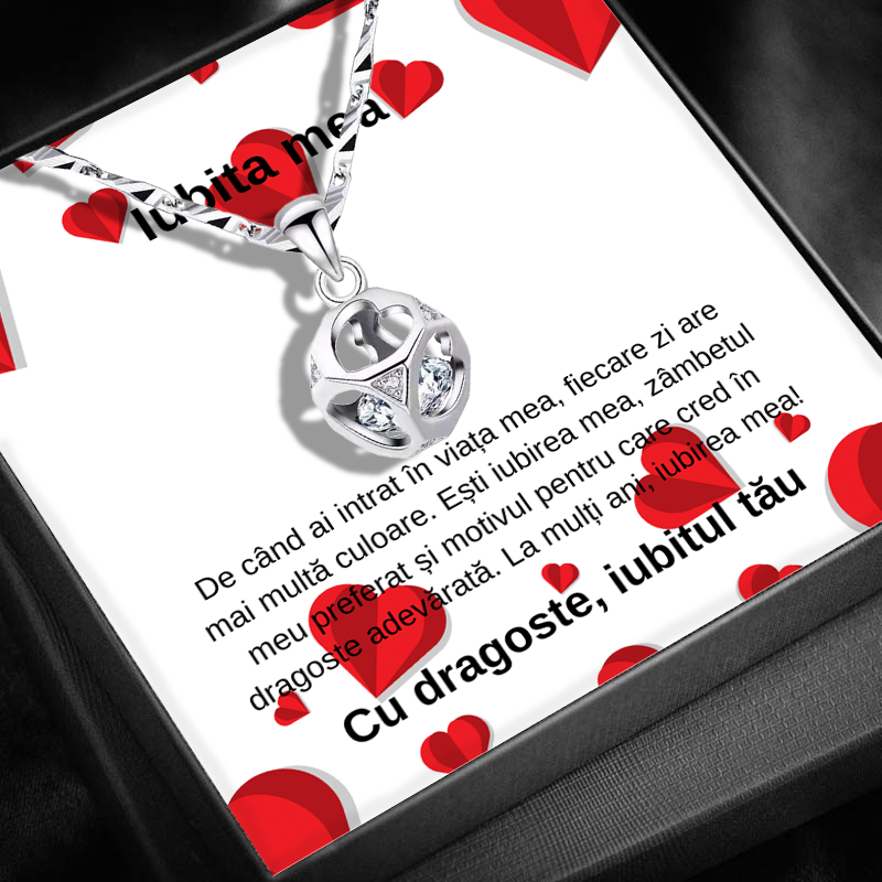 Set Cadou Iubita LD770O – Colier cu Pandativ Cubul infinitului din Argint 925 placat cu rodiu, Cutie Elegantă și Felicitare Personalizată