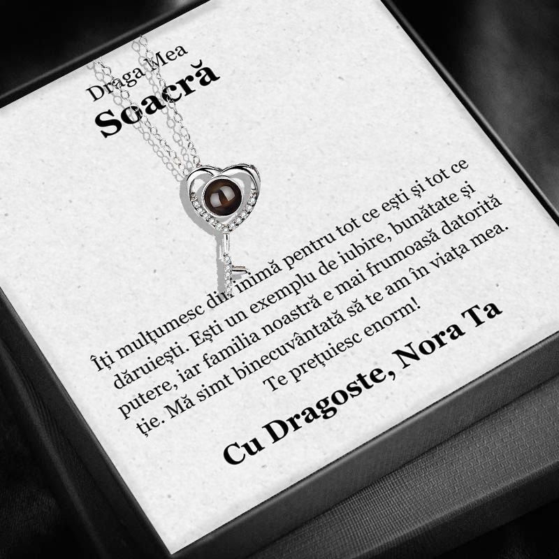Soacra este, adesea, o prezență specială în viața noastră, o femeie care, prin răbdare, grijă și înțelepciune, contribuie la armonia și iubirea din familie. Imaginează-ți zâmbetul soacrei tale în momentul în care primește un colier elegant, simbol al legăturii profunde care vă unește. Acest colier, Cheia destinului , este mai mult decât o bijuterie – este o emblemă a iubirii, respectului și recunoștinței pe care o porți pentru ea.