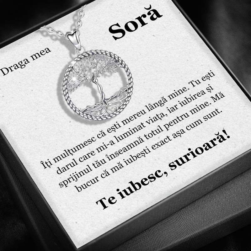 Imaginează-ți zâmbetul surorii tale în momentul în care deschide cutiuța și descoperă acest colier elegant, Copacul Intelepciunii. Un simbol al legăturii speciale și al iubirii necondiționate ce vă unește. Pandantivul, decorat cu cristale cubic zirconia, radiază o strălucire delicată, oglindind frumusețea și sufletul pur al surorii tale. Un cadou perfect pentru femeia care îți este mereu alături, un dar care va rămâne în amintirea voastră ca un simbol al iubirii și sprijinului de neprețuit..