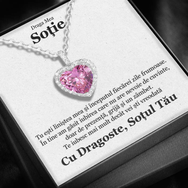 Imaginează-ți zâmbetul ei în momentul în care deschide cutiuța și descoperă acest colier elegant, Perla Roz. Un simbol al iubirii nemărginite și al legăturii profunde care vă unește. Pandantivul, decorat cu cristale cubic zirconia, strălucește cu o delicatețe aparte, oglindind frumusețea și rafinamentul soției tale. Un cadou perfect pentru femeia care îți face inima să bată mai tare, un dar ce va rămâne în amintirea voastră ca un simbol al iubirii eterne.